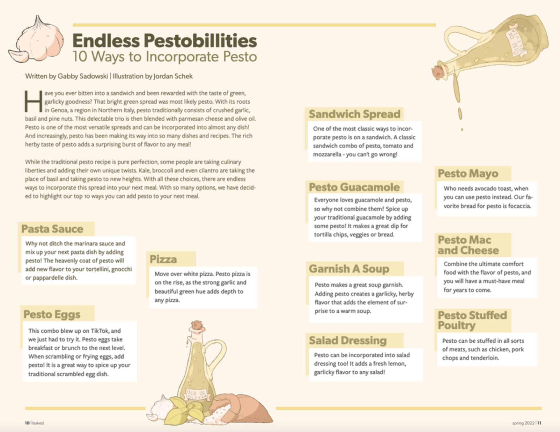 Designs created for BAKED, a student run food magazine at Syracuse University